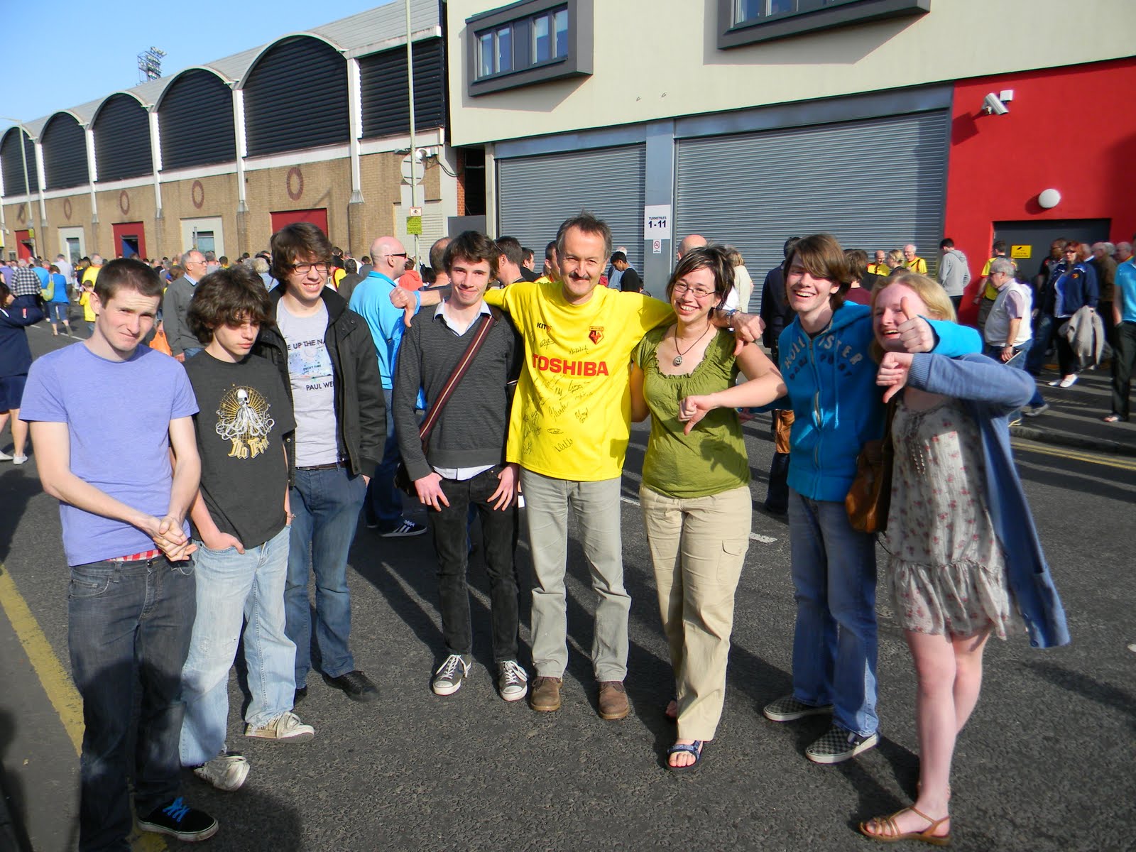 The last several days have been extraordinarily full but I expect the pace to slow a bit for a while so I will be posting more often. To catch you up, I landed in London last Saturday morning. The flight was very smooth and I had no problem at the border though I had to wait in the longest line I’ve ever seen to get into the country. Simon, George, and Hugh came to pick me up and took me back to Simon’s house where we and some other young Friends talked in their garden. In the afternoon, we walked to the local stadium to watch the Watford Football Team (soccer for you Americans) play Hull. We lost by one goal but I loved watching the game. It’s different than watching sports in America. The team supporters have chants and songs they all sing together and there is much more of a community feel to the games versus in America where the teams are supported here and there. At least, this is how it is where I am from. Also, the stadium is right in the middle of the city with houses and shops bordering the stands. There is no car park (parking lot) around it. You park on the street, take a bus, or walk. Many walk. After a game, the streets around the stadium are packed with people walking home.